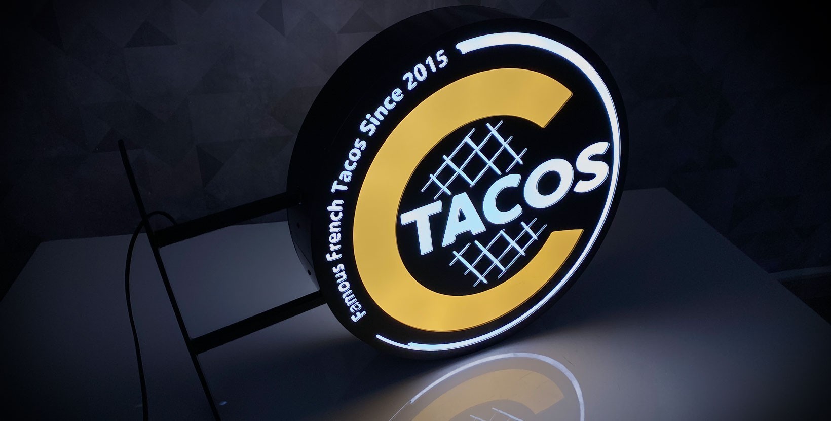 Enseigne drapeau ronde en profilés lumineux