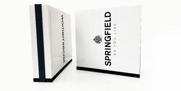 Enseigne drapeau carré lumineux en plexiglas sur tous les côtés double face avec lumière led.